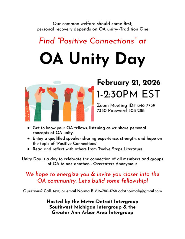 Unity Day is a day to celebrate the connection of all members and groups of OA to one another.– Overeaters Anonymous